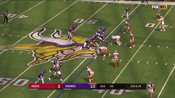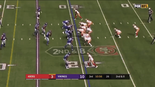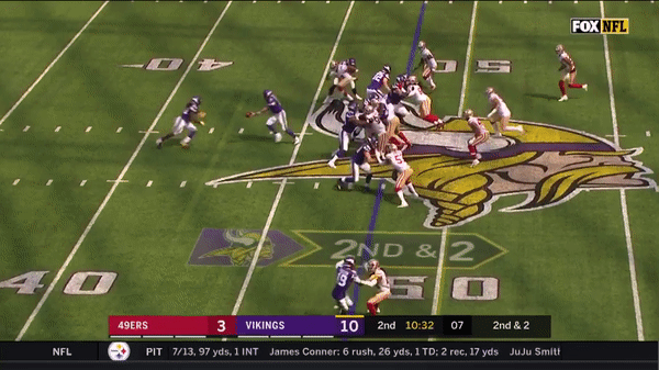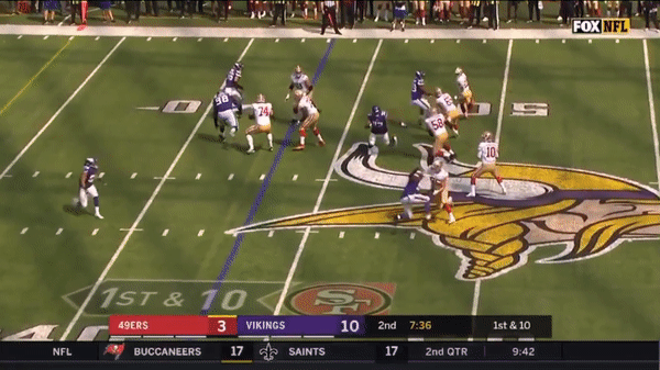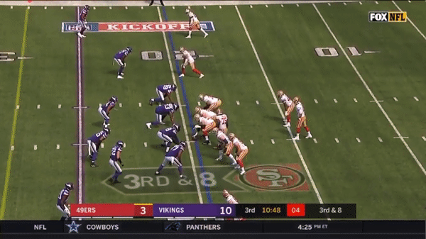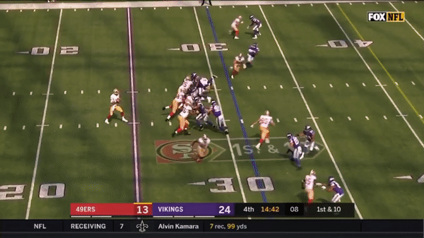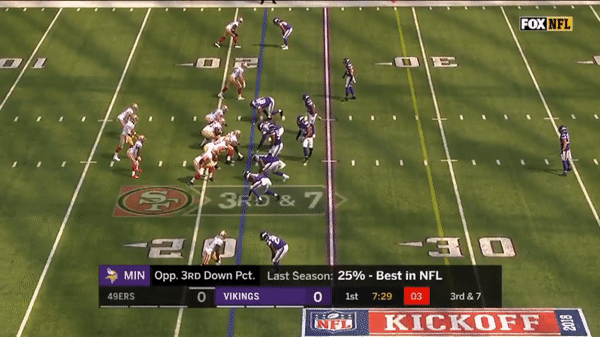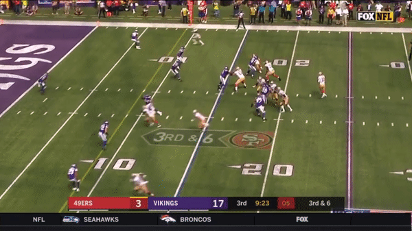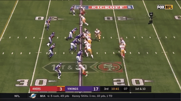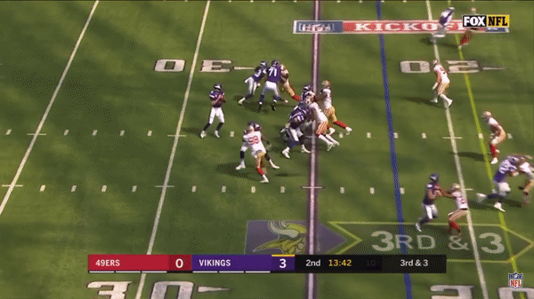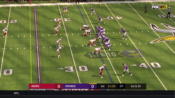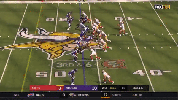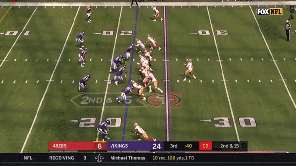 Jimmy came out firing early but you can see that the first drive didn’t go great as he forced a pass over the middle on 3rd & 7 to George Kittle when several Vikings were in coverage.