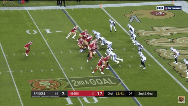 Kittle has a very nice one handed acrobatic catch and long run against the Raiders.