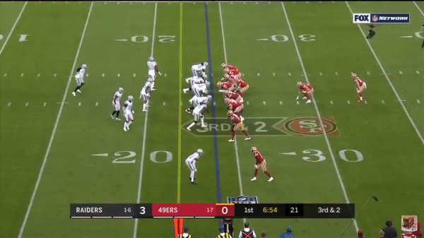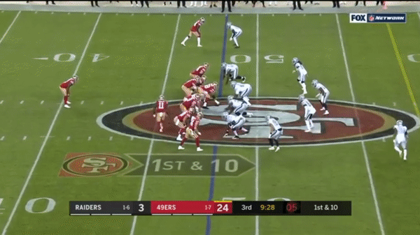 Mostert busts out a long run against the Raiders, showing his playmaking ability.